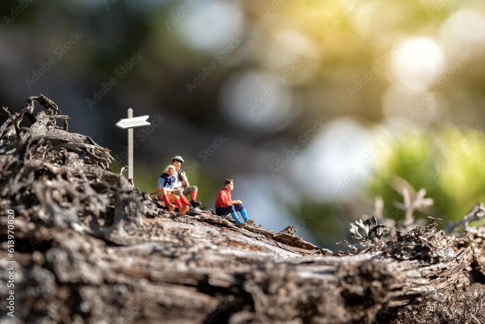 People taking break while enjoying hike in forest