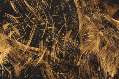 Oil and acrylic ink smear blot canvas painting paper. Abstract texture gold, black color stain brushstroke texture background.