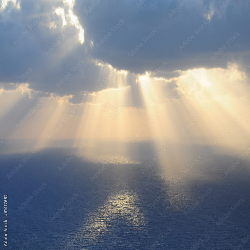 Clouds and rays of sun above the sea.