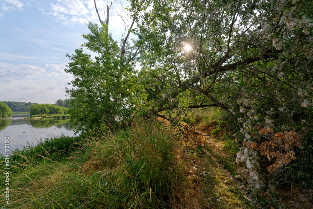 Country path along the Islands of the Saint-Mesmin National Nature Reserve in Loire valley