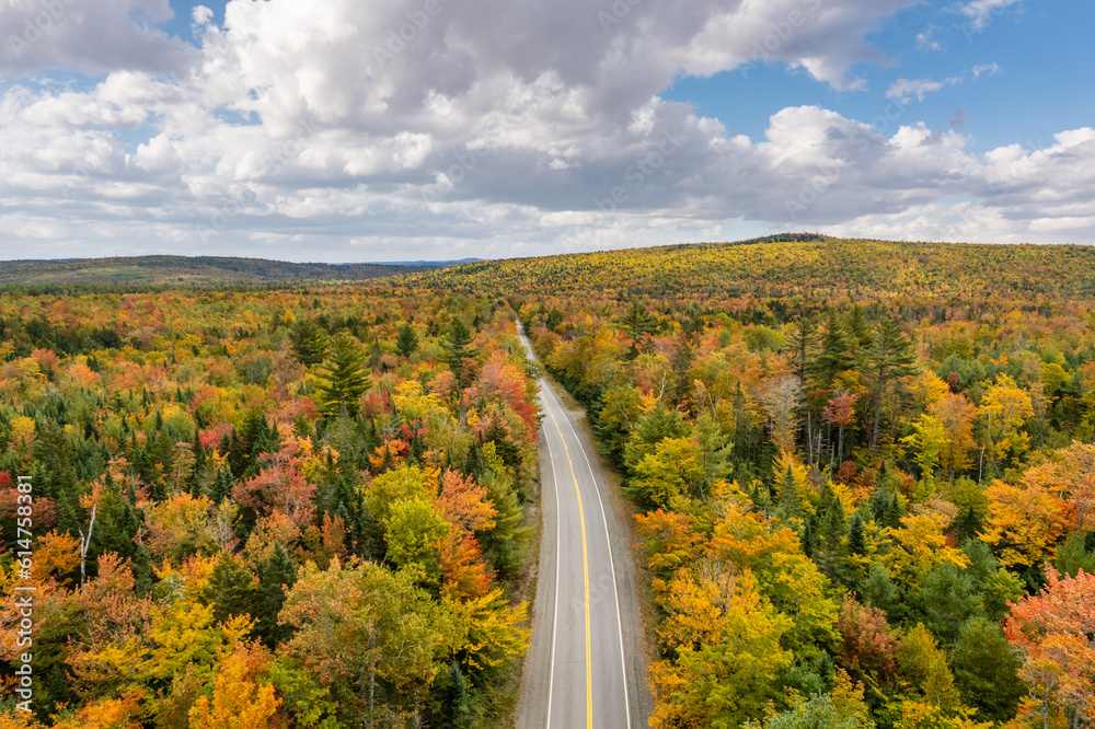 Scenic fall drive with autumn colors - rural Maine highway 16