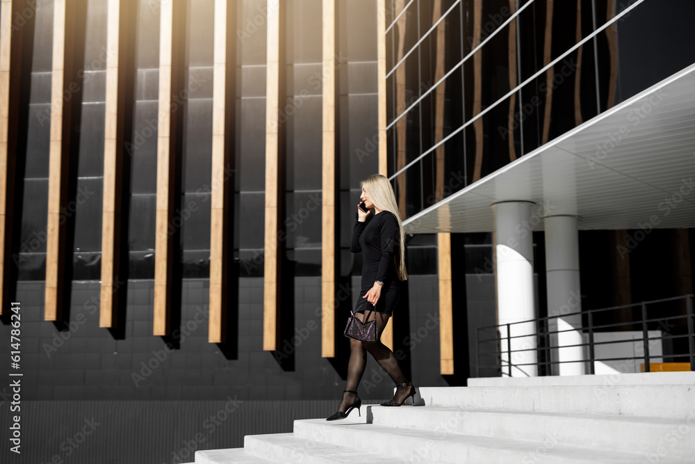 happy successful caucasian female calling by phone