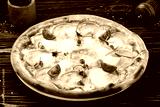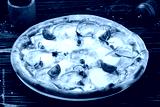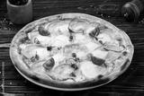 Pizza with ham, mozzarella cheese, tomatoes and microgreens, junk food.