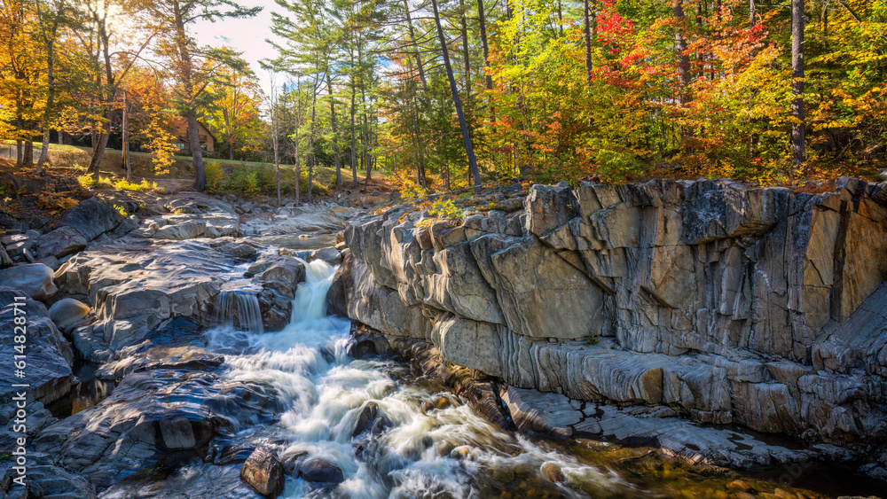 Rangeley Lakes Scenic Byway - Coos Canyon waterfall and rapids in Autumn on the Swift River - Maine.