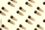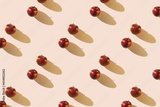 Red apples on light beige pastel background with long shadows. Apple Day. Minimal healthy organic food concept. Flat lay, top view