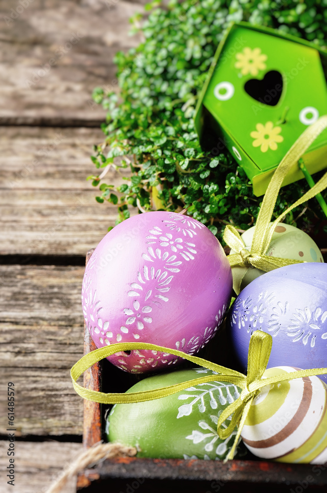 Easter setting with decorative eggs