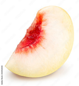 Shiny Yellow Peach fruit with leaf on white background, Fresh Peach on White Background.