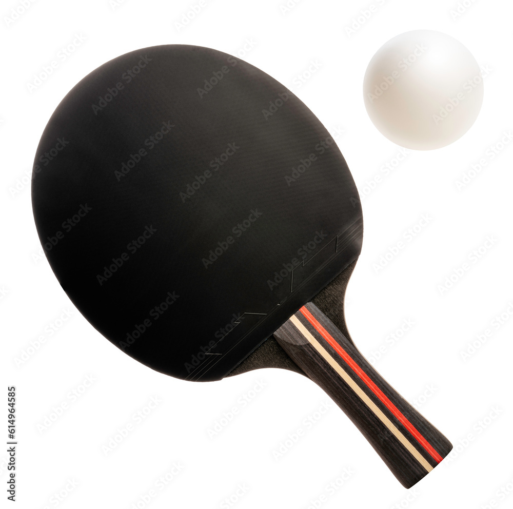 Table Tennis racket and table tennis ball isolated on white background, Ping Pong racket and ping pong ball sports equipment on white With work path.