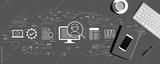 Document management system concept with a computer keyboard and office items