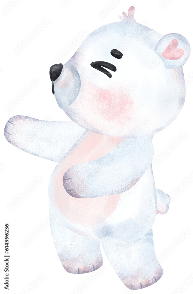Playful Polar Bear, Expressive Watercolor Cartoon character, Varied Poses