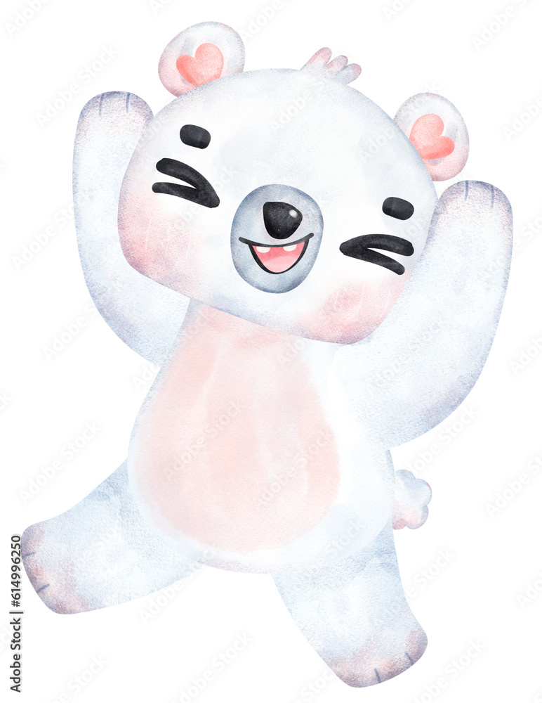 Playful Polar Bear, Expressive Watercolor Cartoon character, Varied Poses