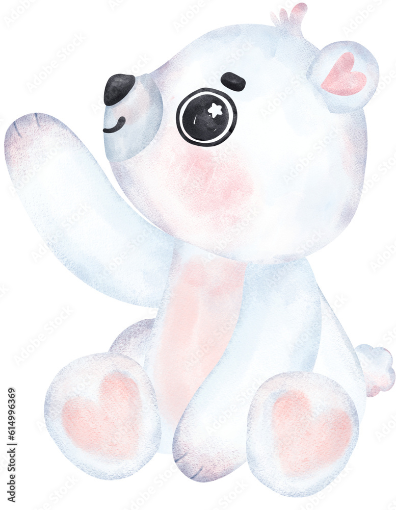 Playful Polar Bear, Expressive Watercolor Cartoon character, Varied Poses