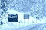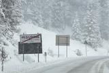 View of a snowstorm in a road in Misurina, Auronzo di Cadore, Dolomites; Province of Belluno, Italy