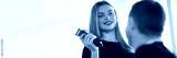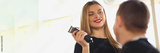 Smiling female hairdresser holding hair trimmer and communicating with male client. Choosing stylish fashionable hairstyle for man
