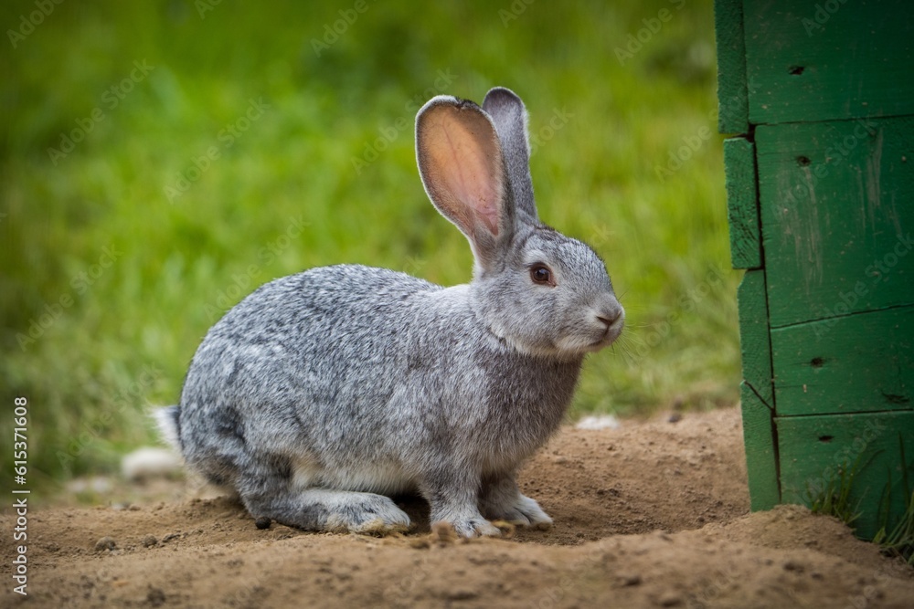 gray rabbit on the farm