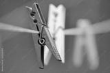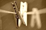 Clothespins hang on a cord
