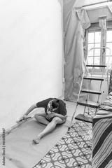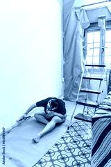 Home Remodeling: Middle-Aged Woman Painting Wall in Vibrant Yellow