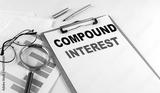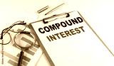 COMPOUND INTEREST text on clipboard with chart on white background, business concept