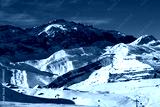 Ski resort at sunny evening. Greater Caucasus, Mount Shahdagh. Qusar rayon of Azerbaijan.