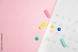 close up of calendar on the pink table background, planning for business meeting or travel planning concept