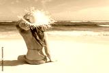 Woman lies on the white sand on the beach