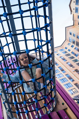 Active little girl on playground. Summer holidays. Active lifestyle. Happy childhood