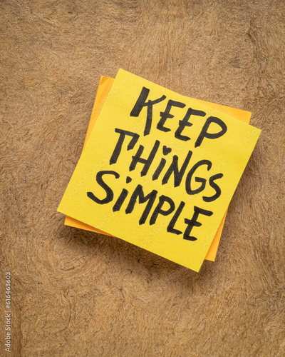 keep things simple - handwriting on a reminder note, simplicity, minimalism or lifestyle concept
