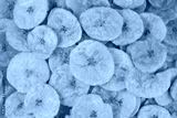 Pile of dehydrated fried banana chips with salt, top view. Chifles, tostones o patacones. Top view of typical traditional dish of Latin American gastronomy called Chifles or fried tostones. Platano.