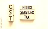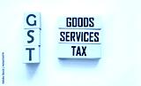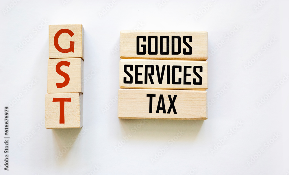 GST alphabet letters on wooden blocks, GST GOODS AND SERVICES TAX message on wooden blocks and white background
