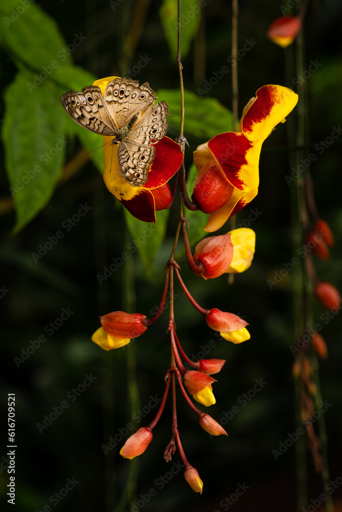Gray Pansy butterfly - Junonia atlites, beautiful brown and grey butterfly from Southeast Asia meadows and woodlands, Malaysia.