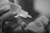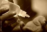 Hand disinfection. Taking disinfectant alcohol gel on hands in white light to prevent virus epidemic. Prevention of influenza.