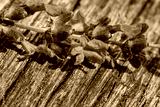 Bunch of lavender flowers on old wooden background.