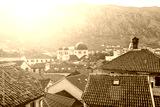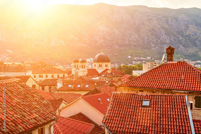 Sunset over the red tiled roofs of the old town of Kotor, Montenegro.