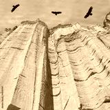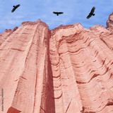 Condors above red rock canyon. Talampaya National Park.