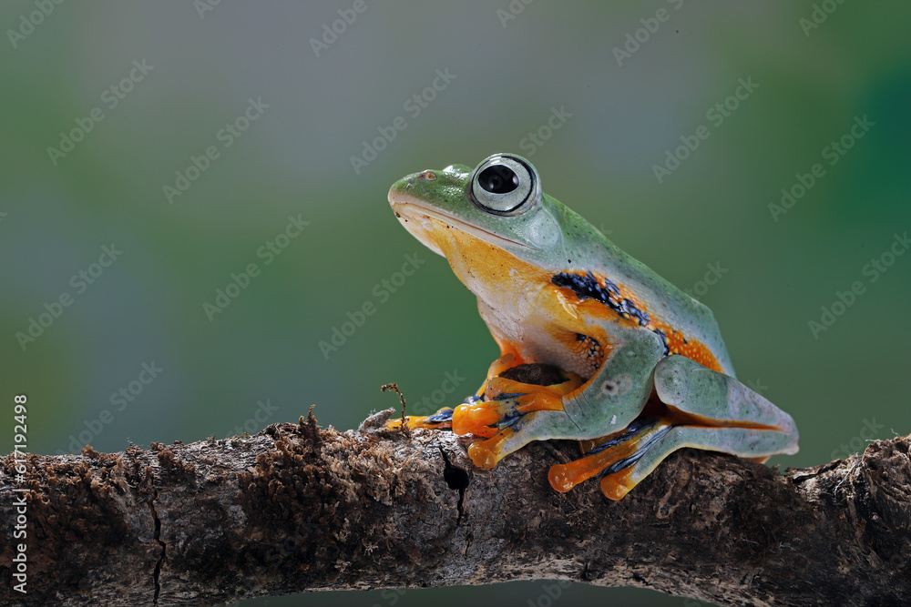A Flying Frog (Rhacophorus reinwardtii) on tree branch.