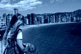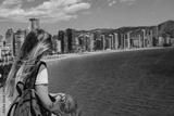 Carefree young tourist woman in sun hat enjoying sea view at Balcon