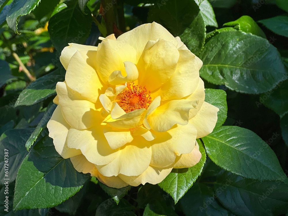 Rose flower yellow blossom, beautiful tea rose in garden.