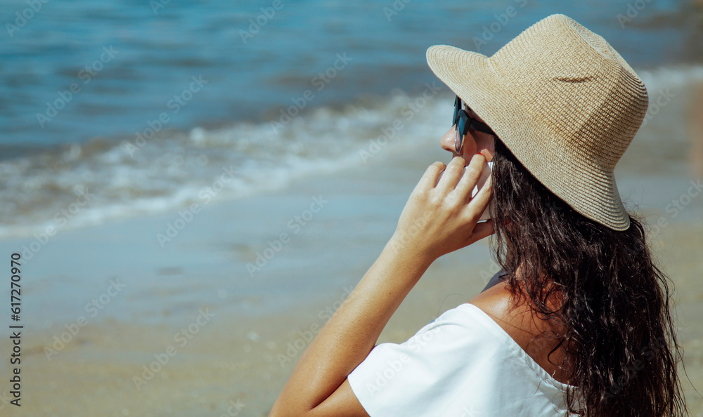 young woman on the beach talking on the mobile phone