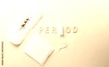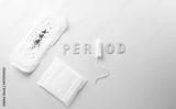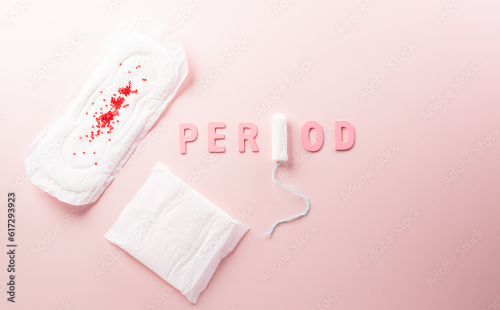 White sanitary pad and the text on pastel background. Woman health or body positive concept.