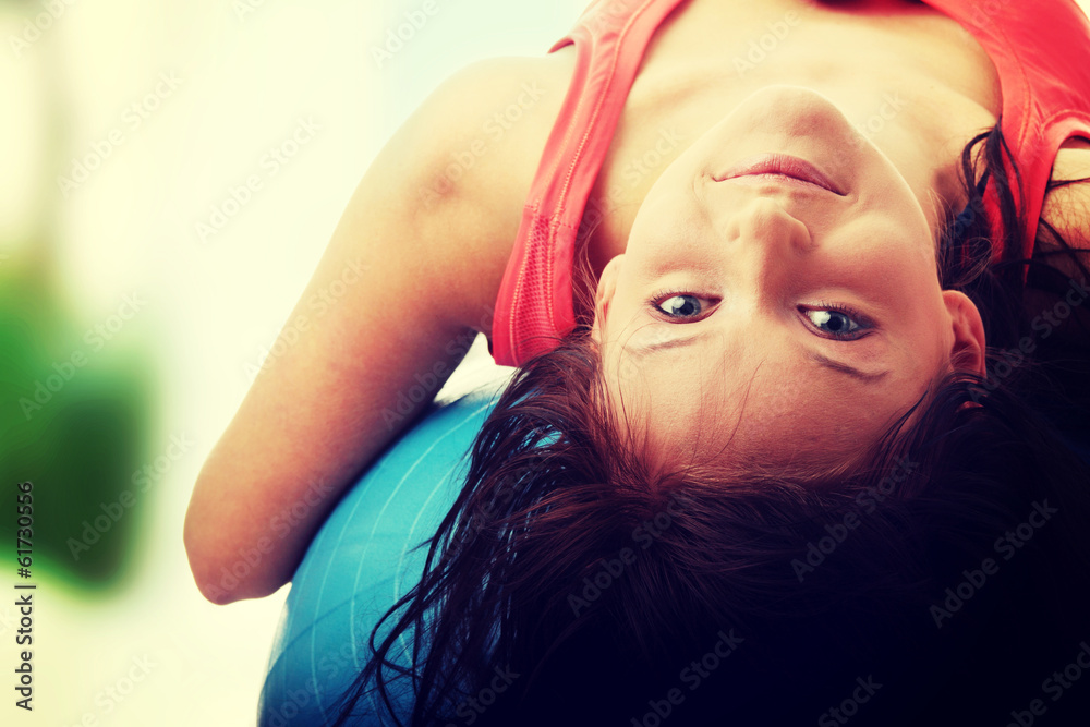 Young happy woman doing fitness exercise