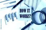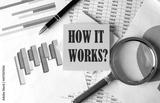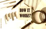HOW IT WORKS text on a sticky on the graph background with pen and magnifier