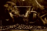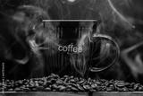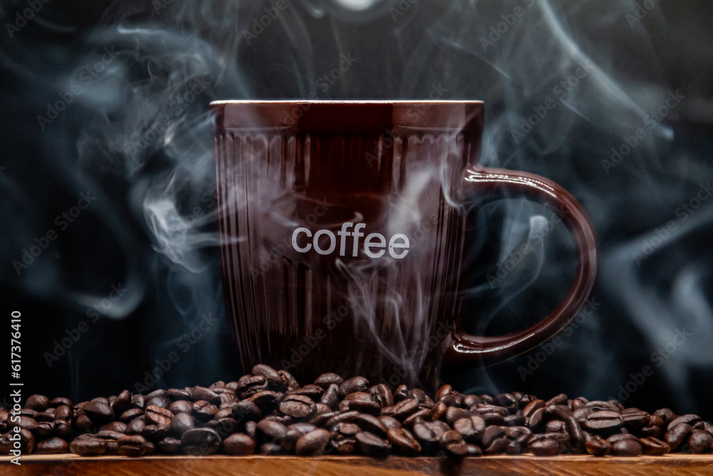 smoke coffee beans and cup