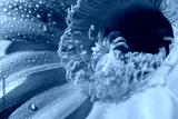 Macro photography of the inside of a cactus flower. The pistil and stamens filled with pollen, rain droplets on white flower petals, sparkling in the summer sun.