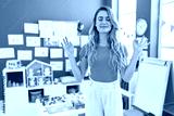 Young caucasian woman working as teacher at kindergarten relax and smiling with eyes closed doing meditation gesture with fingers. yoga concept.
