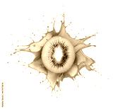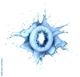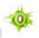 Half of a kiwi fruit with a splashes of juice isolated on a white background