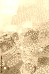 Art oil and acrylic smear blot dot canvas painting with pencil, pastel line elements. Abstract color stain brushstroke texture background.