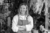 Woman florist small business owner standing with crossed arms in floral store. High quality photo
