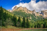 Spring mountain ladnscape in Polish mountains. Beautiful valley and mountain peaks in Western Tatra, Poland.
