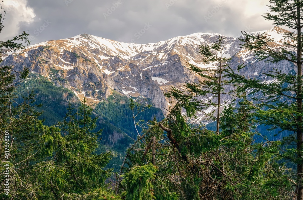 Spring mountain landscape in Polish mountains. Trail in the wild forest in Western Tatra Mountains, Poland.