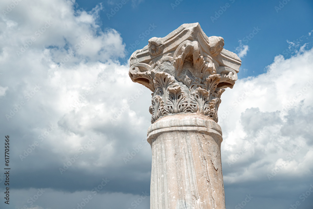 Close-up of an ancient pillar at Kourion Archaeological Site. L:imassol District, Cyprus